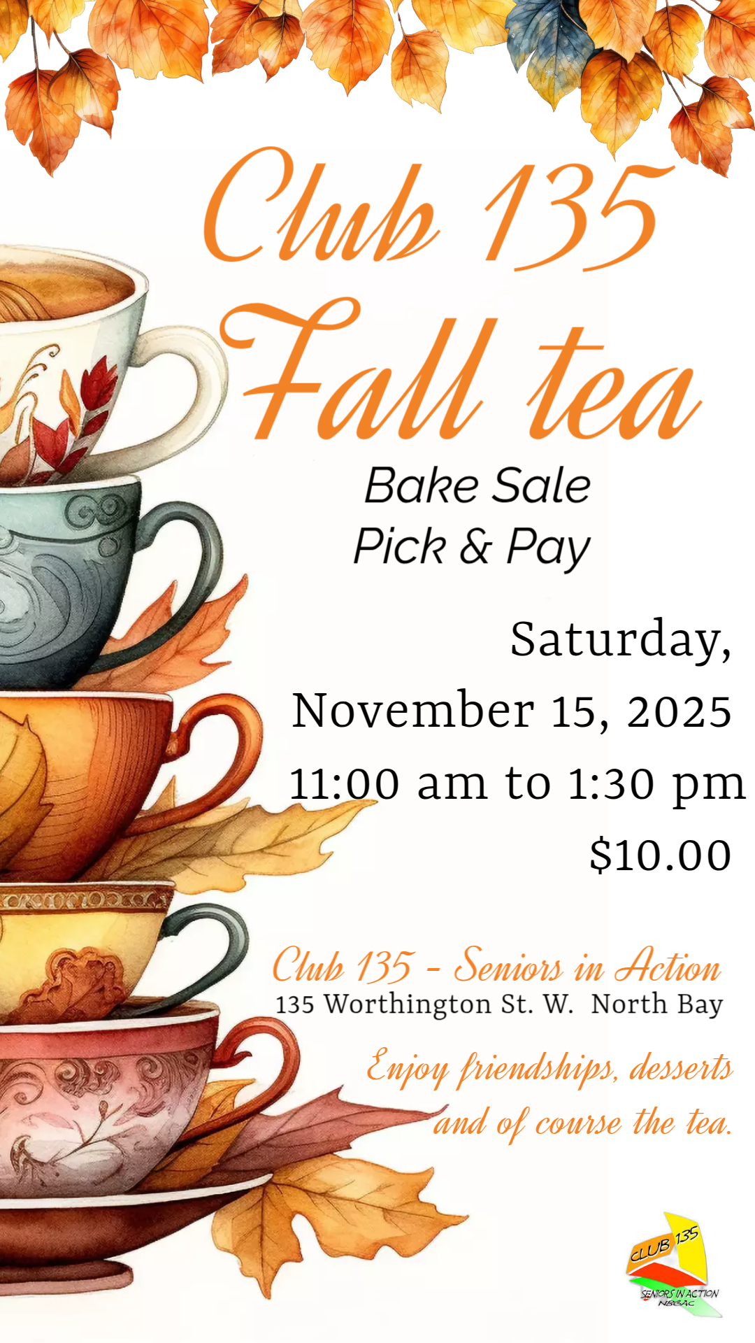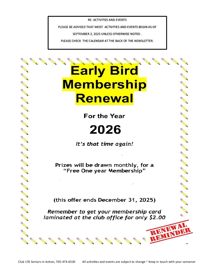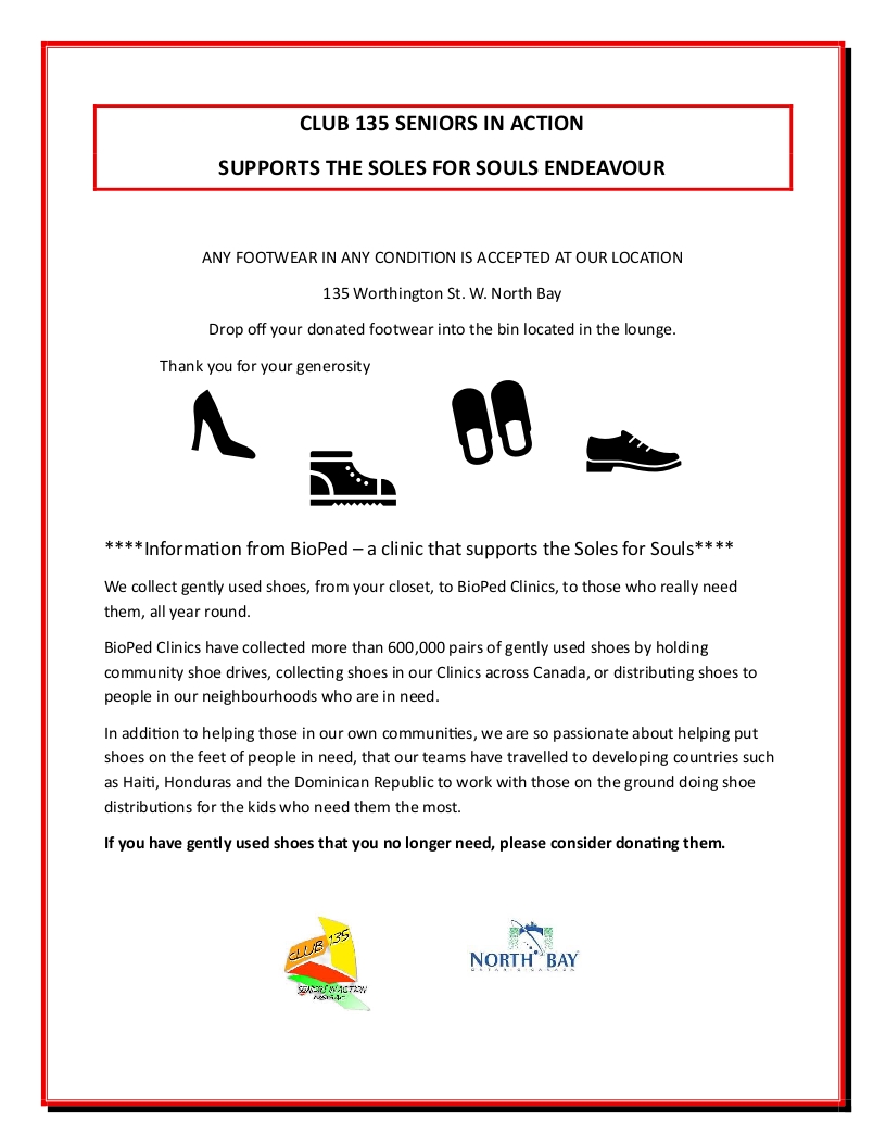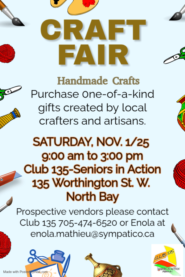 North Bay Golden Age Club 135 Worthington Street West North Bay, ON P1B 8M6 (705) 474-6520